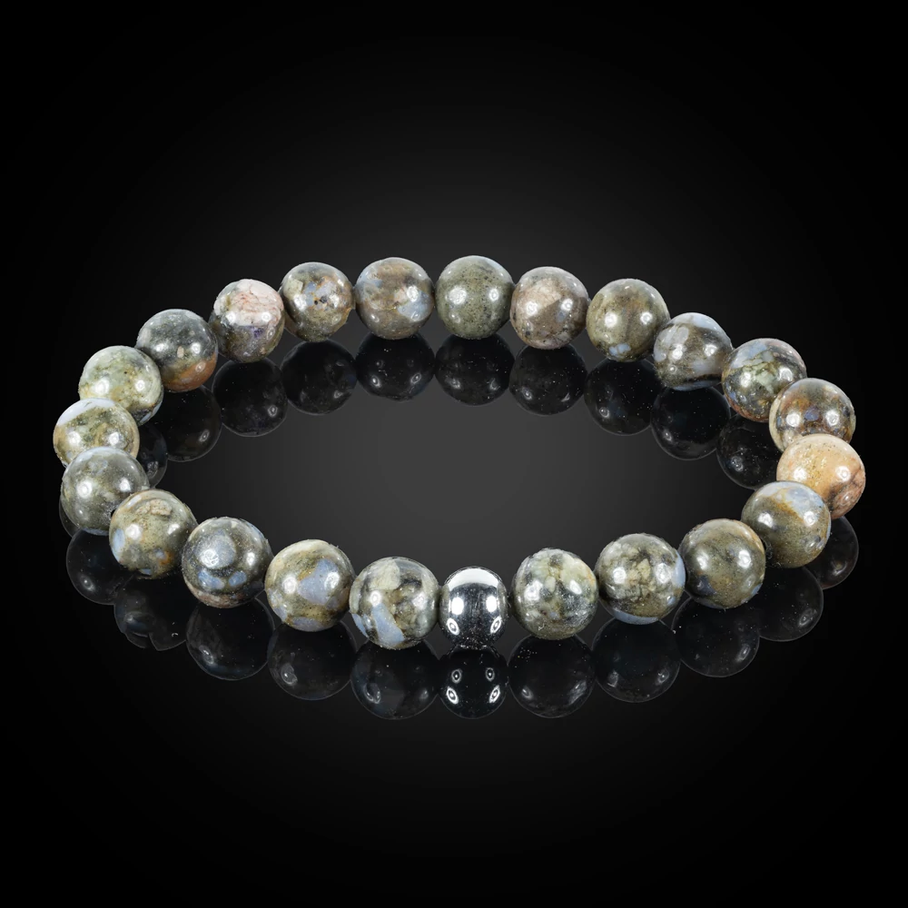8 mm-es golyókból készült rugalmas karkötő, választható méretben és tetszőleges nemesacél köztessel. |