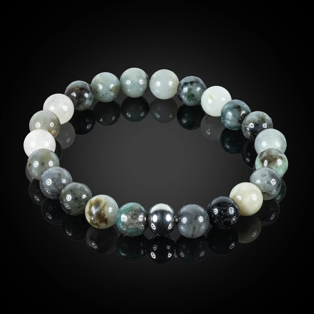 Termék paraméterei: 8 mm-es gyöngyökből készült rugalmas, smaragd karkötő, egyedileg választható nemesacélos fémalkatrésszel, több méretben. A fém golyók mérete: 8 mm, a "kocka" mérete: 5×5 mm, a szív mérete: 8,5×10,5 mm, melyek közül 1 db választható. Ezek funkciója a gumidamil elkötéséből keletkező csomó eltakarása, a karkötő egyediségének fokozása. Amennyiben nem kerül kiválasztásra a fém és a karkötő mérete, abban az esetben egy átlag 18 cm-es karkötőt küldünk, a fényes (1. számú) nemesacélos golyóval.
